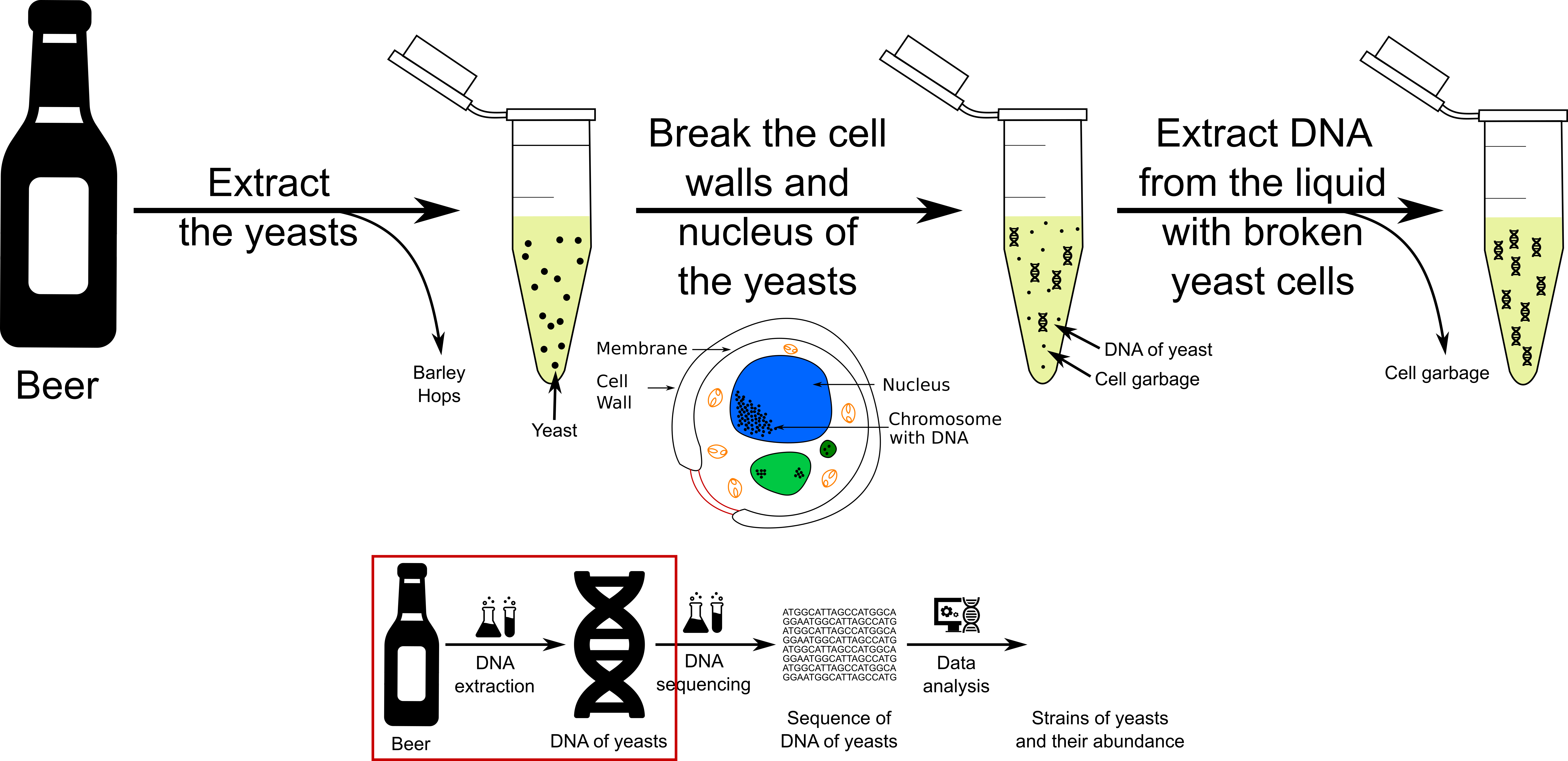 name: inverse layout: true class: center, middle, inverse --- # Microbiota, DNA and sequencing? ---  --- ### Anna loves craft beer  --- ### Anna loves craft beer  --- ### What is a micro-organism?  .footnote[[Sources](http://sitn.hms.harvard.edu/flash/2013/pandoraviruses-relics-of-a-hidden-domain-of-life/attachment/joe3/)] ??? Need to change it probably --- ### Where can we find micro-organisms?  ??? Make them vote for each image if there is micro-organisms --- ### Where can we find micro-organisms?  --- ### Where can we find micro-organisms?  --- ### Where can we find micro-organisms?  --- ### Where can we find micro-organisms?  --- ### Where can we find micro-organisms? </div> ??? Make them vote for each image if there is micro-organisms --- ### And what about in humans? The main view about micro-organisms in human  .footnote[Source: [NIAD](https://www.flickr.com/photos/niaid)] --- ### And what about in humans? But micro-organisms are mostly beneficial in humans  --- ### Do we have more micro-organism cells or <br>human cells in our own body? --- ### Do we have more micro-organism cells or <br>human cells in our own body? - **10 times** more micro-organism cells than human cells - More than **10,000** different microbe species in one human --- ### What about beer?  --- ### Key Ingredients of Beer  --- ### 1. Brewing: Malting  --- ### 2. Brewing: Mashing  --- ### 3. Brewing: Boiling  --- ### 4. Brewing: Fermentation  --- ### How to identify micro-organisms?  ??? - Historically, cultivation - only 10% can be cultivated --- ### More than 90% of micro-organisms are unculturable  --- ### Any other solution? - How can we compare micro-organisms? - What do you have in common with any other living organisms? - What does make you different from your neighbor? --- ### DNA the blueprint of life  ??? - DNA is the common element between organisms. - But how can you determine it's difference? --- ### What is DNA?  ??? - alphabets - ATCG small moleculs - consits of atoms - Atoms are social - How can we now read the DNA? --- ### Do you remember?  .footnote[[Sources](http://sitn.hms.harvard.edu/flash/2013/pandoraviruses-relics-of-a-hidden-domain-of-life/attachment/joe3/)] --- ### DNA Sequencing  .footnote[[Sources](https://lerninhalte.blogspot.com/2013/04/dna-sequenzierung-kettenabbruchmethode.html)] ??? - Sanger: Very accurate but not feasable whole genones! Do you konw of any genome or sequencing projects? --- ### The Human genome project  ??? Huge development: Next Generation Sequencing (NGS) or High Throughput Sequencing (HTS) --- ### How much effort to sequence a human genome?  --- ### How to identify micro-organisms?  --- ### Which micro-organisms inside beers?  --- ### Sequencing and microbiota are part of our life  --- ### Anna is not alone!  --- ### What we are going to do?  --- ### DNA extraction  --- ### DNA sequencing  --- ### Data analysis